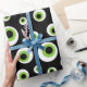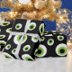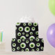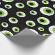 Spaß-Halloweenverpackungspapier in Schwarzem, in Grünem und das Weiß, das ein nahtloses Muster der Cartoonaugäpfel kennzeichnet.