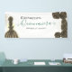 Begrüßen Sie Ihre Gäste mit königlicher Eleganz mit diesem atemberaubenden, maßgeschneiderten Willkommensbanner, das perfekt für eine anspruchsvolle Quinceañera oder Sweet 16 ist. Das Design zeigt ein schönes Mädchen in einem majestätischen schwarzen Kleid, gepaart mit dunklen Bronzerosen und schimmerndem goldenen Konfetti, alles hervorgehoben durch eine luxuriöse, smaragdgrüne Schrift.