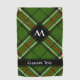 Grün, Schwarz, Rot und Weiß Tartan-Design. Nahtloses Muster. Benutzerdefinierter Text und Monogramm.