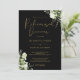 Elegante Blumengrün Schwarz-Gold-Probe-Dinner Einladung mit Ihren Namen und Probe Dinner Details Set in schicken Text und Ihre Monogramm-Initialen auf der Rückseite. Entwickelt von Thisisnotme©