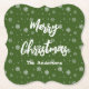 Elegantes, modernes, traditionelles Weihnachtsdesign mit Schneeflocken-Muster auf grünem Hintergrund mit künstlerisch weißer Typografie und fröhlichem Weihnachtsgrüßen. Personalisieren Sie Ihren Familiennamen.