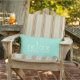 Mit diesem gestreiften Kissen im Freien in einem grünen und aqua gestreiften Muster verleihen Sie Ihrem Wohnbereich ein Gefühl des Sommers. Weißer, individueller Text liest entspannt und bleibe, schmückt die Vorderseite, das Kissen. Personalisieren Sie den Text, um zu lesen, was Sie gewollt haben.