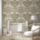 Grün und Beige Flamingo Floral Damask Wallpaper Tapete