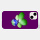 Dieses phantastische iPhone Gehäuse zeigt ein Foto einer wilden Pansy-Blume. Das Foto wurde künstlich gefärbt, was zu einer Panik mit leuchtenden grünen Blütenblättern und einem hellblauen Mittelpunkt führt. Der Hintergrund ist lila, um die Farben der Blume zu ergänzen.