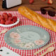 Dieses hübsche Design ist mit einem hellgrünen Hintergrund mit Rosa und Elfenbeinfloralen gestaltet.