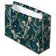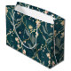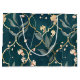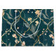 Velvour, tiefgrüner Hintergrund mit goldgelben marokkanischen Mustern und zitternden orchiden Blume.