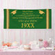 Personalisierte Grün-und Goldklassen-Wiedersehen-Fahne oder Abschluss-Fahne. Schreiben Sie herein Ihren Text in die 3 Text-Kasten-Vorlagen, indem Sie "ABC anklicken, personifizieren diese Schablone". RUFEN Sie Designer Linda an: 239-949-9090 oder Sie können Sie, die Grün und Gold, Hintergrund und Text FARBEN ZU ÄNDERN. Designer Linda kann die Abschlusskappen ändern und trägt Streifen zu jeder möglicher Farbkombination zur Schau.