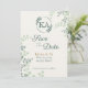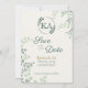 Dies ist eine Vorlage für eine natürliche und elegante Hochzeit Save the Date mit Grün und Monogramm Themen. Ideal für eine DIY Hochzeit, damit Sie beide den Vorbereitungsprozess genießen können.