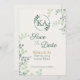 Grün und Mongramm Hochzeit Speichern Sie die Datum Einladung