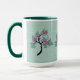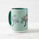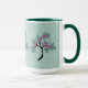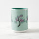 Fügen Sie Ihrem Tisch einen beruhigenden Brennpunkt mit einer trendigen Tasse mit einem anmutigen asiatischen Blütenbaum in Minzgrün mit Pflaumenfarben hinzu.