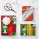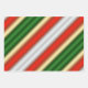Die niedliche und farbenfrohe Weihnachtszettel in Grüntöne und Rot, die niedlichen Schneemänner in grün auf metallischem, rotem Hintergrund, mehr grüne Schneemänner auf goldenem Hintergrund und ein diagonal gestreiftes Rot-, Grün- und Weißmuster.
