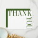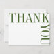 Reiche waldgrüne Typografie fühlt sich modern und frisch in einem einzigartigen und auffallenden Layout, das buchstäblich die Grenzen der Seite drückt. Eine leere Rückseite verlasse viel Platz für eine sorgfältig handgeschriebene Dankesnotiz.