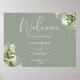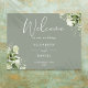Dieses elegante Weidegrün verlasse das Begrüßungsschild für Hochzeiten können mit Ihren Informationen in der schicken Typografie personalisiert werden. Entwickelt von Thisisnotme©