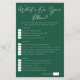 Ein elegantes smaragdgrünes Brautparty-Spiel Was ist auf Ihrem Handy für ein Outdoor-Wald-Party. Personalisieren Sie diese trendigen Papierblätter mit Ihren eigenen Punkteoptionen für Ihre Freunde. Ein lustiges, individualisierbares Junggeselinnen-Abschied-Spiel.