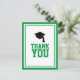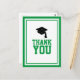 Schreiben Sie Ihren Dank mit dieser Grünen und Weiß Graduation Party Danke Postcard. "Danke" in grün und ein schwarzer Gradmütze, umgeben von einer weißen und grünen Grenze. Der Rücken ist leer für Ihre persönliche Nachricht.