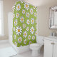Der Duschvorhang ist grün und weiß, blühende Daisy-Muster
