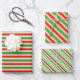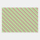 Diese festlichen, lustigen Verpackungs-Papierblätter zeichnen sich durch inspirierte weihnachtliche Streifenmuster mit Farben wie grün, weiß und rot aus. Feiernde Packpapierblätter wie diese könnten sich beim Verpacken von Geschenken oder Geschenken zum Weihnachtsfeiern als lustig erweisen.