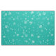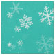 Das Design ist in den Farben Grün und Weiß gehalten. Schöne weiße Schneeflocken in verschiedenen Formen und Größen auf grünem Hintergrund.