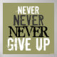 Gib nie auf. Motivierend Design von Elke Clarke ©2010. Passen Sie Ihre Farbauswahl an. Ideal für Büro- und Arbeitsräume. Motivierend, aber trendige Plakatkunst: Im MONOGRAM GALLERY machen wir gerne Briefe, um angenehme Designs zu kreieren. Für Zazzles Plakatherausforderung dachten wir, wir würden die Wirtschaft und das vergangene Jahr bei der Gestaltung berücksichtigen. Die Phrase ist nicht neu, aber die grafische Darstellung und die beabsichtigte Botschaft finden bei uns allen mehr denn je Resonanz. Gib nie auf!