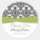 Grün, Weiß und Schwarz Damask 3" Rundaufkleber Runder Aufkleber