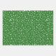 Grün-weiße Weihnachtstypografie und dots Urlaub Wrapping Paper Sheets. Das erste Blatt enthält den Text "Frohe Weihnachten" in weiß auf grün, das zweite weiße Polka Punkte auf grün und das dritte den Text "Frohe Weihnachten" in grün auf weiß.