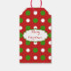 Grün-weiße Polka-Punkte auf Weihnachtsrot Geschenkanhänger