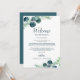 Diese üppig grüne Hochzeitsbegrüßung und die Karten für den Ausflug sind perfekt für eine elegante Hochzeit im Hinterhof. Das moderne botanische Design besticht durch herrliche Aquarellblaue Eukalyptusbäume und grüne Blätter. Auf der Vorderseite der Karte befindet sich ein Begrüßungsschreiben, auf der Rückseite der Karte befindet sich der Hochzeitstag. Diese Noten sind ideal für Hochzeiten in Urlaubsort und Begrüßungstaschen für Hotelgäste.