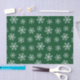 Ein Muster weißer Schneeflocken auf grünem Hintergrund.