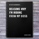 Funny Notebook für Büromitarbeiter, Manager, Arbeitsfreunde oder andere Verwaltungs- und Geschäftsleute. Personalisieren Sie den Namen, der auf der Unterseite des Covers "Gründe warum ich mich von meinem Boss verberge" gedruckt werden soll. Individuelle Name Notizbücher eignen sich hervorragend für Jubiläen, Feiertage, Bürogeschenke und vieles mehr!