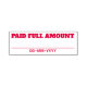 Dieses Design der Gummi Briefmarke beinhaltet die Meldung "PAID VOLLSTÄNDIGE MENGE" und eine Zeile, in der ein Zahlungsdatum geschrieben werden kann. Es könnte vielleicht verwendet werden, um anzugeben, dass eine Rechnung oder Rechnung vollständig bezahlt wurde.