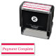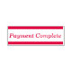 Diese schlichte Gummi-Briefmarke ist mit der Meldung "Payment Complete" versehen. Es könnte dazu verwendet werden, eine Rechnung oder Rechnung als bezahlt zu kennzeichnen.