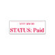 Dieses schlichte Design aus Gummi enthält die Nachrichten "STATUS: Bezahlung" und eine Zeile, in der ein Zahlungsdatum geschrieben werden kann. Es könnte vielleicht verwendet werden, um anzugeben, dass eine Rechnung oder Rechnung vollständig bezahlt wurde.