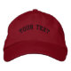 Eine rote, einfache, einstellbare bestickte Kappe mit einer Textvorlage.