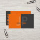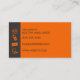 Ein einfacher aber moderner Entwurf mit einem Hintergrund der Orange auf der links Hälfte und der Holzkohle auf der rechten Hälfte. Ihr Name und zwei Initialen gehen auf die Front und alle weiteren Informationen sind auf der Rückseite mit zusammenpassenden Ikonen.