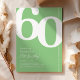 Eine trendige, grüne und weiße 60. Geburtstagsfeier, die nahtlos den Charme der alten Welt des fetten Serif-Schriftartes '60' mit einer modernen, benutzerfreundlichen, personalisierbaren Vorlage verbindet. Diese Einladung ist nicht nur eine Karte, es ist ein bedeutsamer Sake, den Meilenstein von 60 zu schätzen.