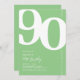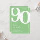 Eine trendige, grüne und weiße 90. Geburtstagsfeier, die den Charme der alten Welt des fetten Serif-Schriftartes '90' nahtlos mit einer modernen, benutzerfreundlichen, personalisierbaren Vorlage verbindet. Diese Einladung ist nicht nur eine Karte, sie ist ein bedeutsamer Sake, um den Meilenstein der 90.