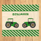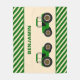Dieses Ausrüstungsbeschreibungen zwei niedliche Bauernhoftraktoren mit grüner und beige Streifengrenze. Fertigen Sie sie mit Ihrem Namen besonders an.