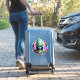 Eine grüne Alien mit großen lila Augen und einem schönen blauen Smaragd.