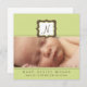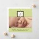 Diese moderne Geburtsankündigung zeigt das erste Baby in einem Rahmen mit einem Raum unter dem Foto für Geburtsdetails. Set auf grünem Hintergrund.