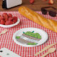 Ein Barrell voller frischer, grüner Äpfel, der schön und frisch aussieht und bereit zum Essen ist. Dieses Design wirkt auf diesen Paper-Tellern sehr effektiv