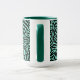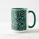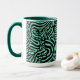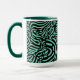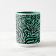 Ein komplexes Muster aquamariner schwarzer und grüner Streifen füllt das Bild und ähnelt der natürlichen Tarnung von Zebras. Das komplexe Design schafft eine optische Täuschung, die die Formen zu einem faszinierenden visuelle vermischt. Ein phantastischer, abstrakter Zebrastreifen-Druck mit lebendigen Merkmalen, ein stilvolles Statement mit dieser fantastischen Tasse und bringen zeitgenössischen Flair in Ihre Küche.