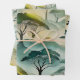 Grüne Aquarellbäume und hügelige Landschaft Geschenkpapier Set