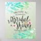 Grüne Aquarellfarben Blätter Chic Brautparty Willk Poster