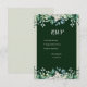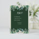 Diese elegante RSVP-Karte ist ideal für alle, die eine raffinierte und stilvolle Art und Weise suchen, ihre Hochzeit anzukündigen. Der tiefgrüne Hintergrund symbolisiert Harmonie und Naturverbundenheit, während die Blume Weiß und Creme eine Touch von Romantik und Raffinesse schaffen. Der kalligraphische Schriftart unterstreicht die Wichtigkeit der Veranstaltung, mit gepflegtem, lesbarem Text, der Wärme und Charme ausstrahlt. Dieses Kartendesign ist ideal für eine naturlich inspirierte oder Vintage Hochzeit. F006