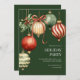 Die Weihnachtsfeiertage im Grünen beherbergt eine wunderschöne Party Einladung von Weihnachtsschmuck in Aquarellen in Rot-, Grün- und Goldtönen.