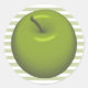 Dieses Design zeichnet sich durch einen glänzenden grünen Apfel auf einem schluchgrünen, horizontal gestreiften Hintergrund aus.