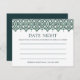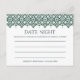 Eine spanische Kachelgrenze in atemberaubenden Farbtönen von Waldgrün schmückt diese Karten. Nutzen Sie diese eleganten Karten in Ihrem Brautparty-Party, damit die Gäste ihre Lieblingsideen für das neue Paar teilen können. Benutzen Sie die Vorlage, um den Namen der Braut und das Datum der Dusche sowie die Namen der Braut und des Bräutigams der Zukunft hinzuzufügen. Ein schöner Sake für die Braut und eine großartige Alternative für Bräute, die etwas ein wenig anders gewollt haben als die üblichen Spiele!