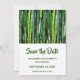 Save the Date Karte mit asiatischem Thema. Ein Foto einer Reihe grüner und gelblicher grüner Bambusstämme.