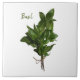 Diese Keramik Kachel kann als Trivet oder Dekoration verwendet werden. Dieses Bild enthält einen Strauß grüner Basilikum aus meinem Kräutergarten, der von Wein zusammengehalten wird.
