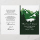 Grüne Berge und Feste gefaltetes Hochzeitsprogramm. Ein trendiges und dennoch elegantes Hochzeitsdesign mit einer Bergkette durch Koniferen und Ihre Namen in handgeschriebenem Stil. Im Inneren befinden sich dunkelgrüne und weiße Ränder mit Polka-Punkten und weißen Rahmen mit Ihrem Text.